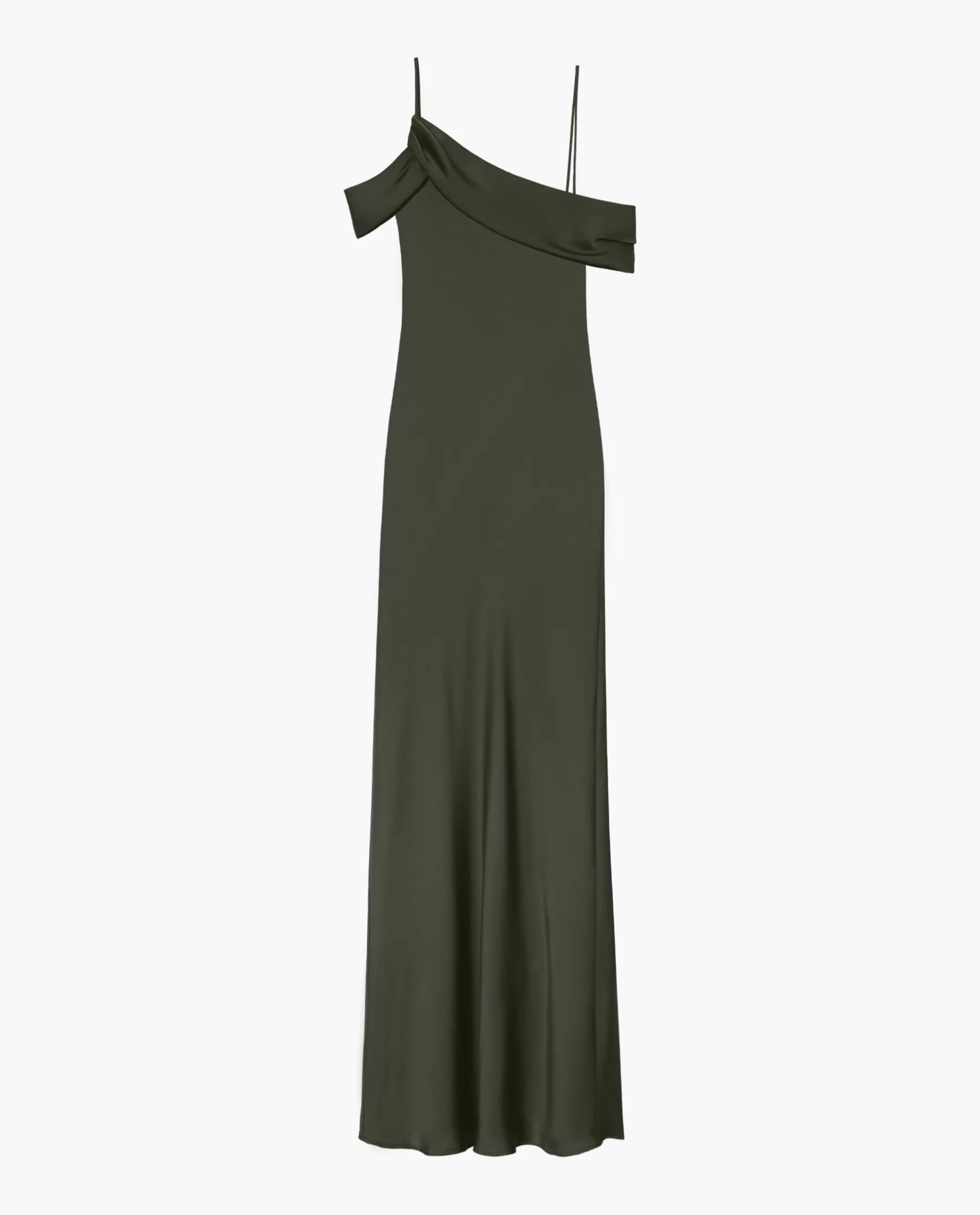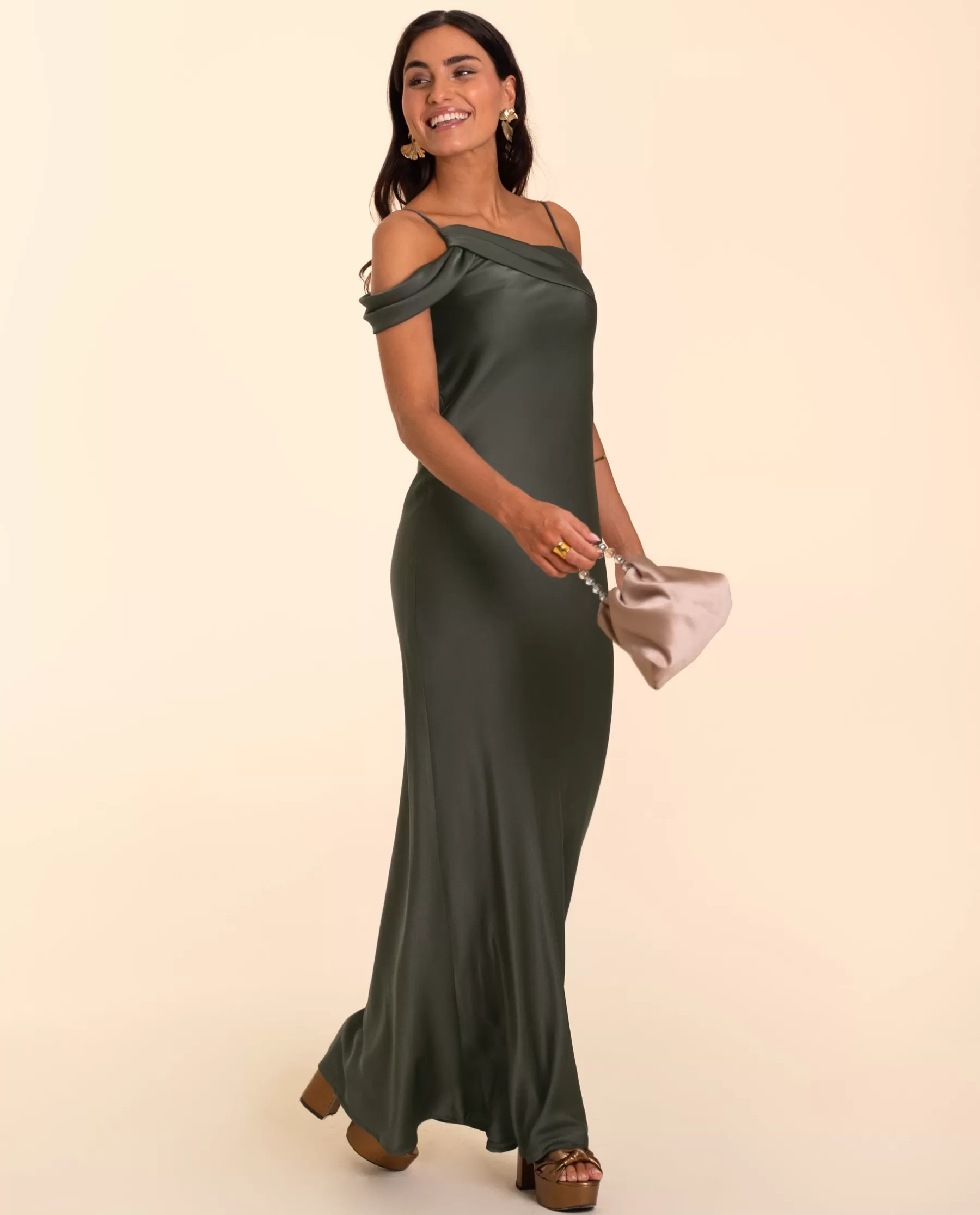 La sencillez de este vestido y sus detalles lo convierten en un diseño único, es por eso que se ha convertido ya en uno de nuestros favoritos para vestir en un evento especial. El Vestido Córdoba destaca por su tejido satinado en color verde empolvado que, al estar cortado al bies, hace que tenga una caída delicada y un movimiento precioso al andar. El escote drapeado deja los hombros al descubierto y va acompañado de un tirante izquierdo que puedes quitar para dejarlo completamente asimétrico. Este es uno de esos vestidos de invitada con los que sentirás que no necesitas nada más para ir perfecta.โจ